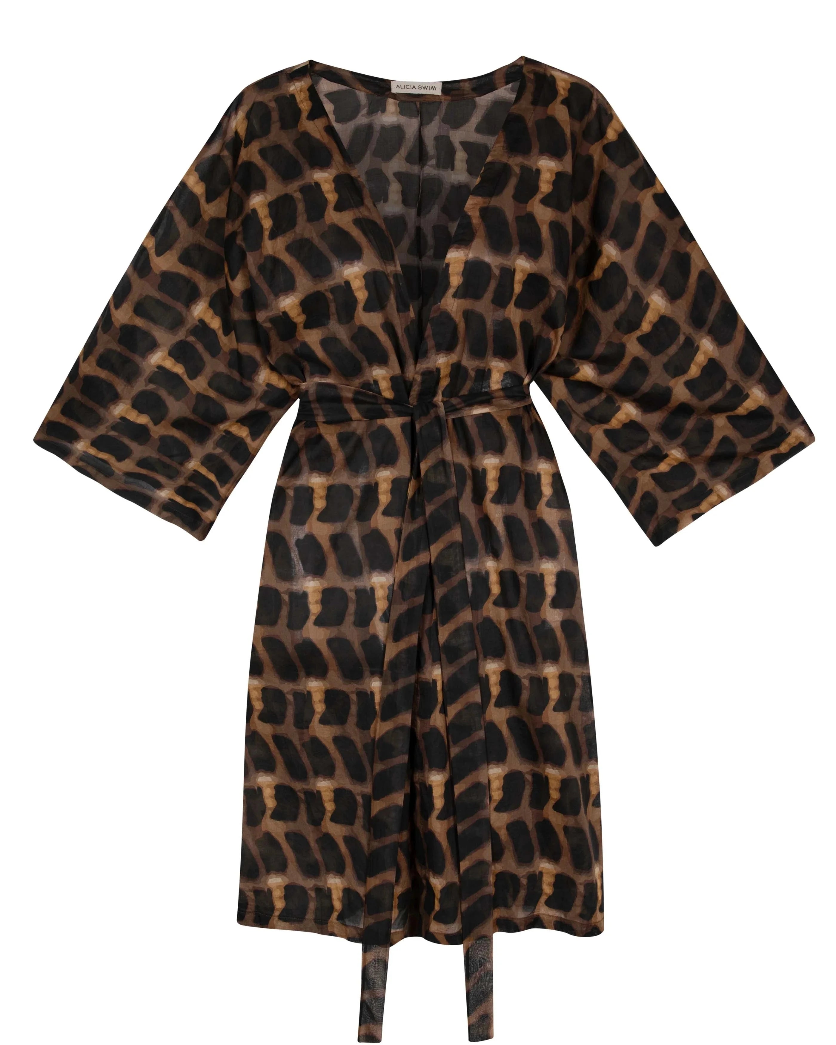 A chic, shorter version of our full-length kimono that comes with an optional matching belt. Throw over your swimwear attire for instant beachside style. Made from a premium cotton fabric to keep you cool in the hot summer days.