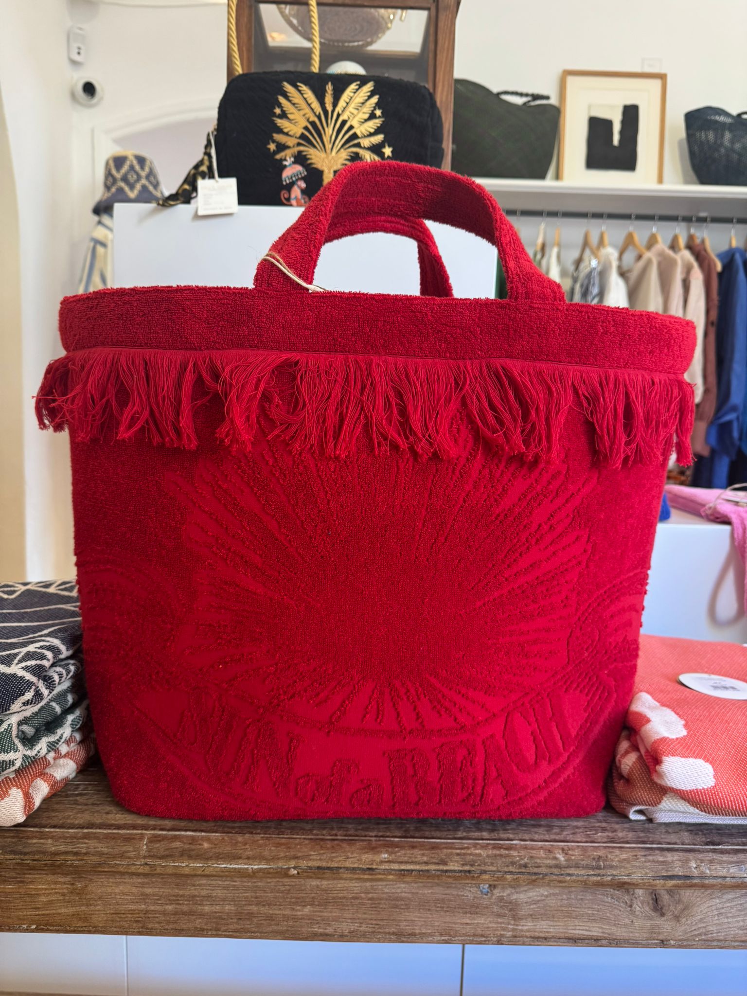 This ultra-spacious beach bag combines practicality and style, crafted from 100% Egyptian cotton towel with a durable 100% cotton canvas lining. Its structured design measures 38 cm in height and features a rounded rectangular base of 60 cm length, offering ample room for all your beach essentials. An interior zippered pocket adds secure storage for valuables, making it a versatile and reliable companion for days by the shore.