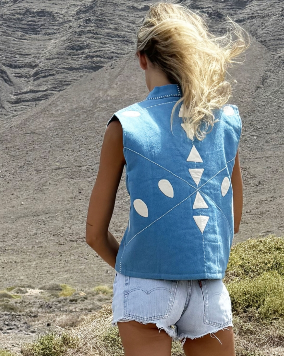 The GRAPHIK BLUE cardigan by BE PARISIAN combines elegance and craftsmanship. Made from 100% cotton twill, it offers comfort and durability. This unique piece, ethically crafted in Nepal by artisans and hand-embroidered, reflects the high standards of Parisian design by Emmanuelle Legavre. Ideal for any look, it comes in a refined cotton envelope. To preserve its quality, professional dry cleaning is recommended. Model Zoé is 1.70 m tall. Our customer service team is available to answer any questions you may have.
