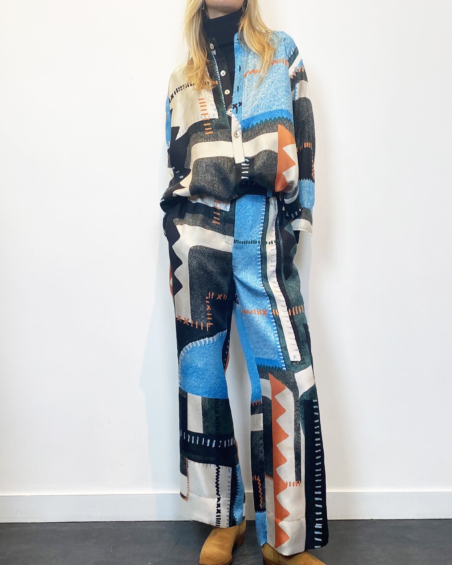 These BE PARISIAN PATCH BLUE SILK TROUSERS are expertly crafted from 100% silk twill, offering a smooth, luxurious feel and elegant drape. Their straight cut ensures a timeless silhouette, while two practical pockets add functionality without compromising style. Designed in Paris and made in France, these trousers combine refined craftsmanship with sophisticated design for an effortlessly polished look.