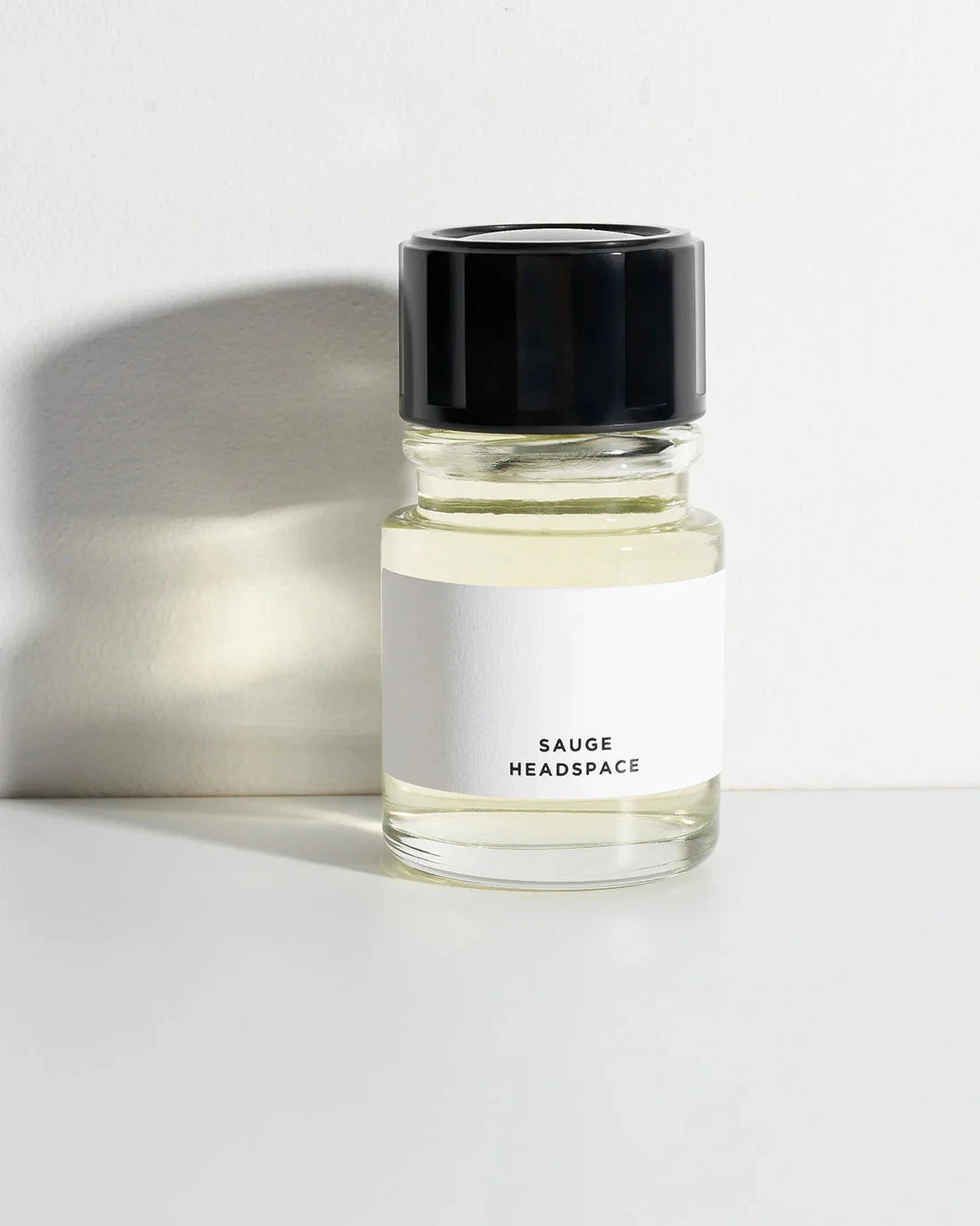 A pink-tinged floral sage resting on a fern-like aromatic structure.