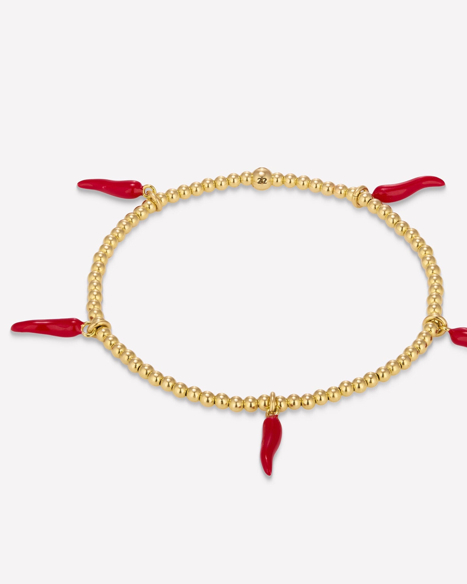 Spice up your wrist stack with this eye-catching bracelet, featuring 5 Enamel Chili Pepper Charms.