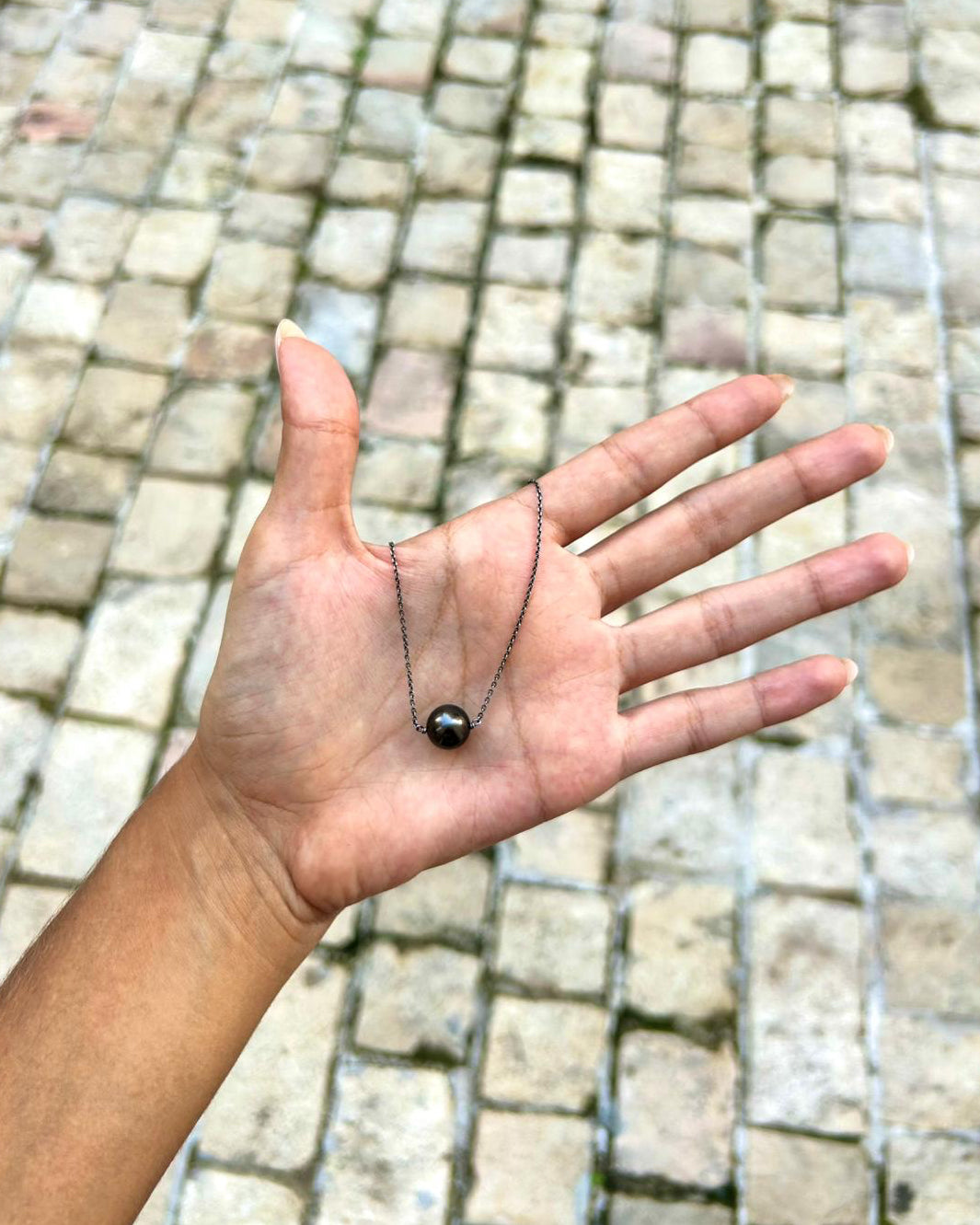 Crafted from 925 sterling silver, the Oceano Jewels Ile Ronde Necklace features an 11mm oxidised Tahitian pearl known for its natural dark luster and subtle iridescence. This expertly designed piece combines classic elegance with a modern twist, making it ideal for those who appreciate refined craftsmanship and distinctive style. The oxidised silver setting enhances the pearl’s depth, offering a sophisticated accessory suitable for both formal occasions and everyday wear.