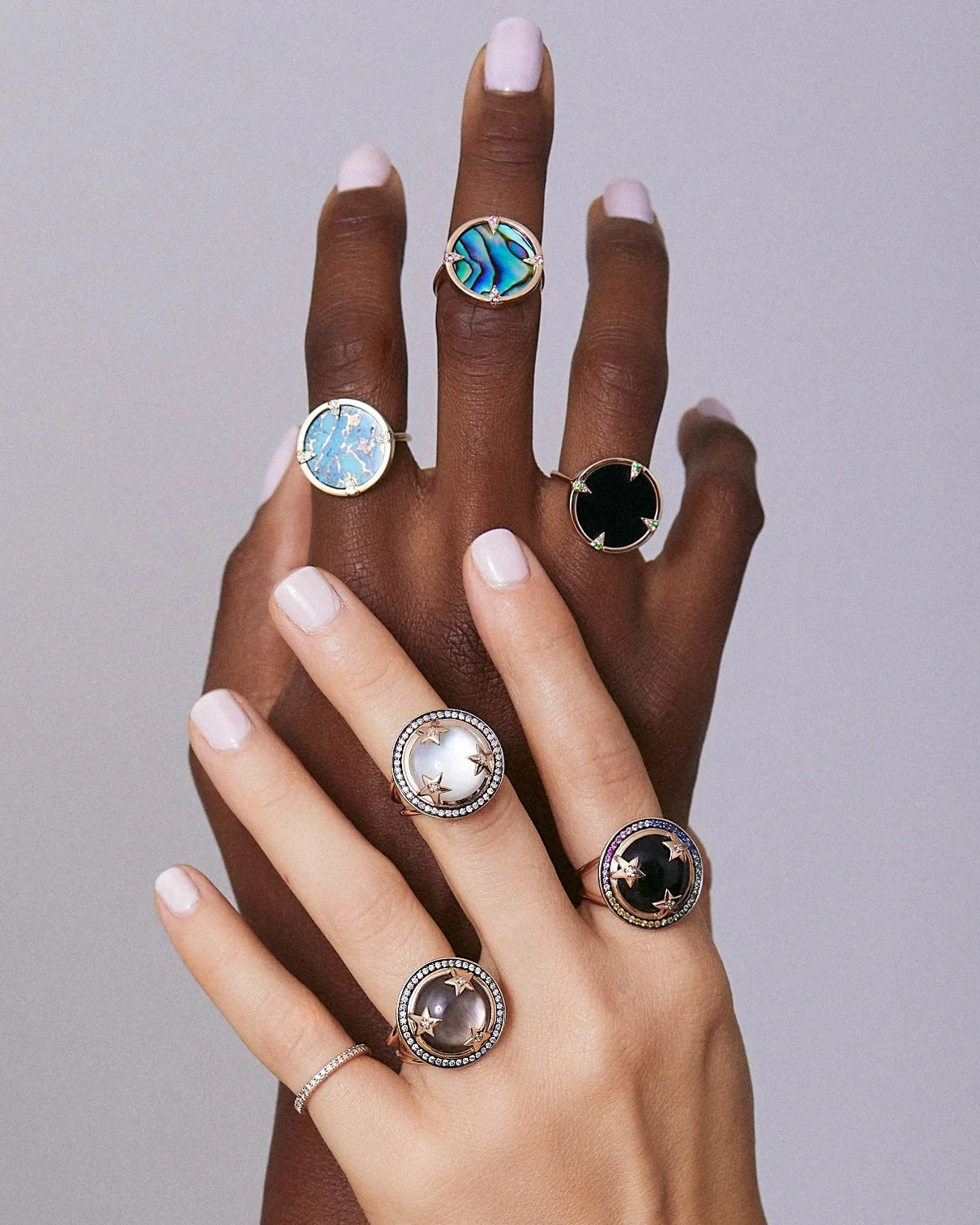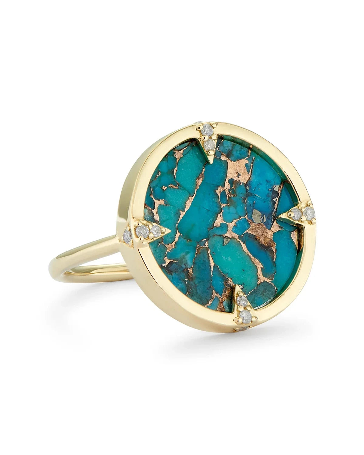 SAMANTHA TEA AURA RING PERSIAN TURQUOISE GREY DIAMONDS