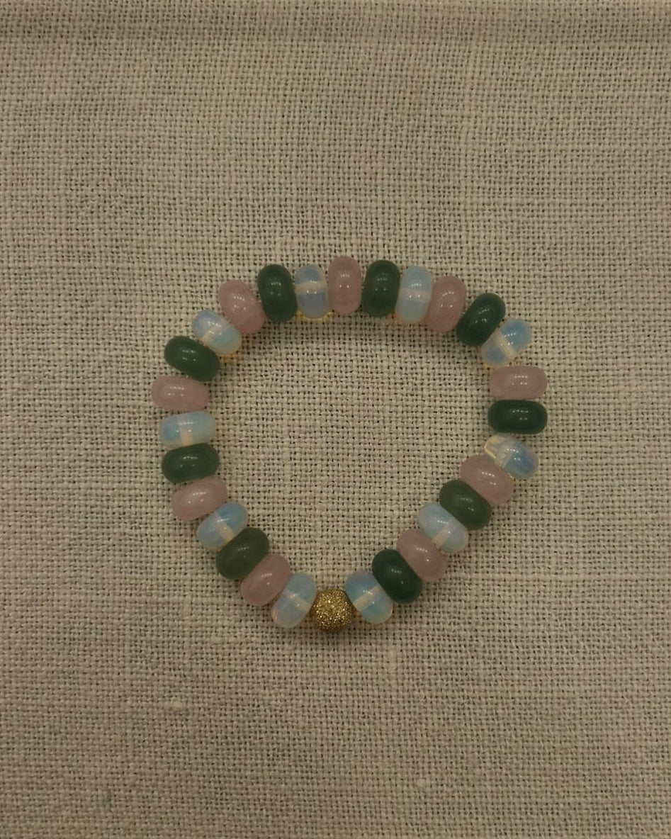 CLEAR QUARTZ AND JADE SEMI PRECIOUS STONES BEADED BRACELET