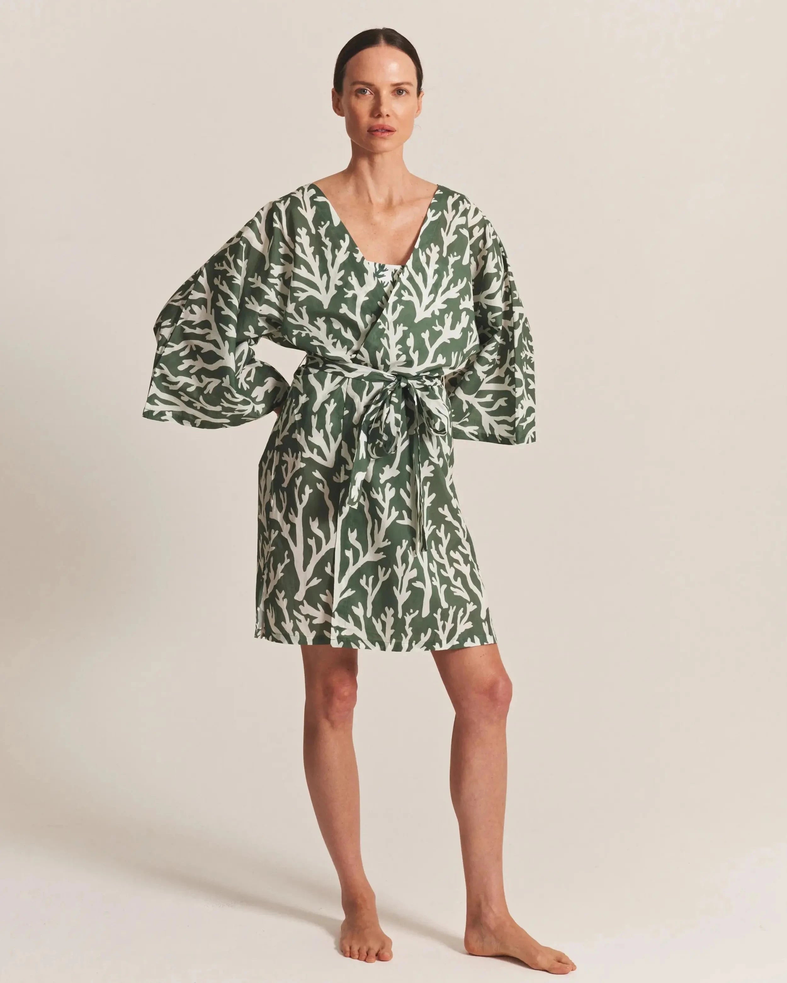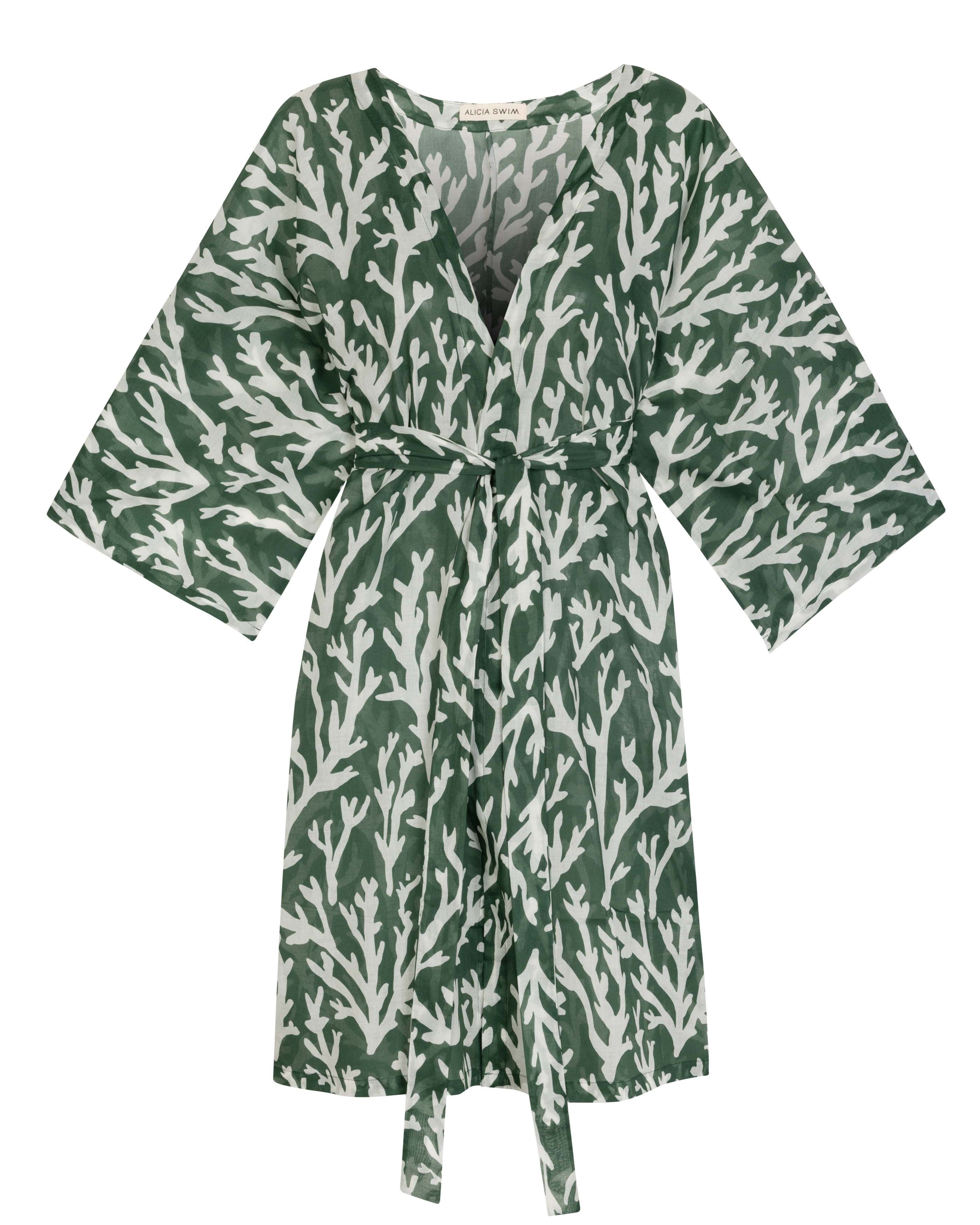 A chic, shorter version of our full-length kimono that comes with an optional matching belt. Throw over your swimwear attire for instant beachside style. Made from a premium cotton and silk blend to keep you cool in the hot summer days.