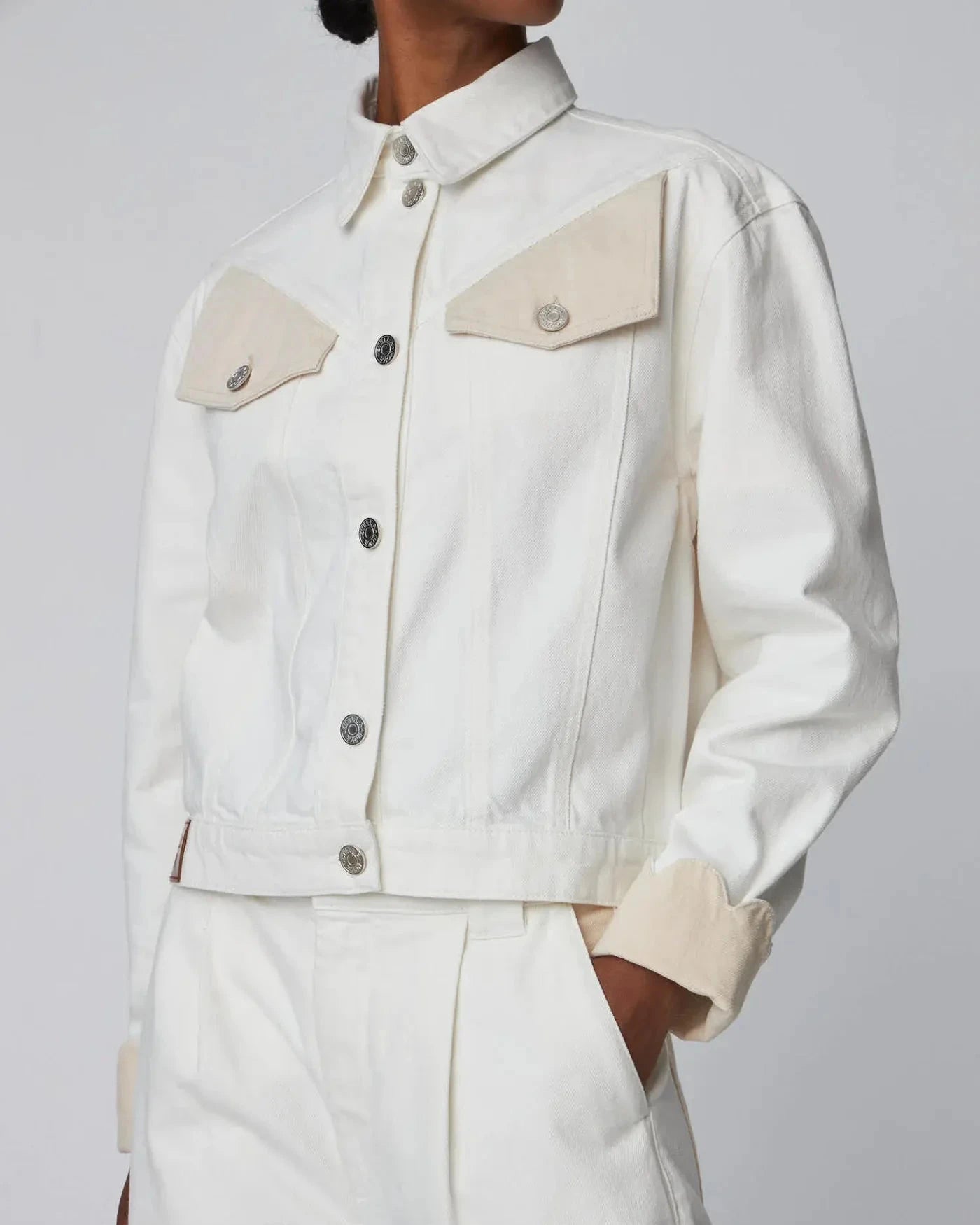This Stella Nova two-toned cotton jacket offers a timeless silhouette with refined contrasting details on the chest pockets and cuffs, enhancing its visual appeal. Crafted in Turkey, it features a secure button-front closure and adjustable waist straps for a customized fit. Practical side pockets add functionality, while the discreet logo on the side underscores its designer quality. Ideal for layering, this jacket balances classic style with thoughtful details for versatile, expert-level wardrobe integration.