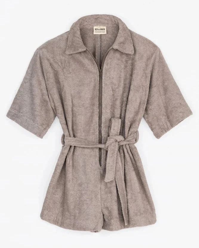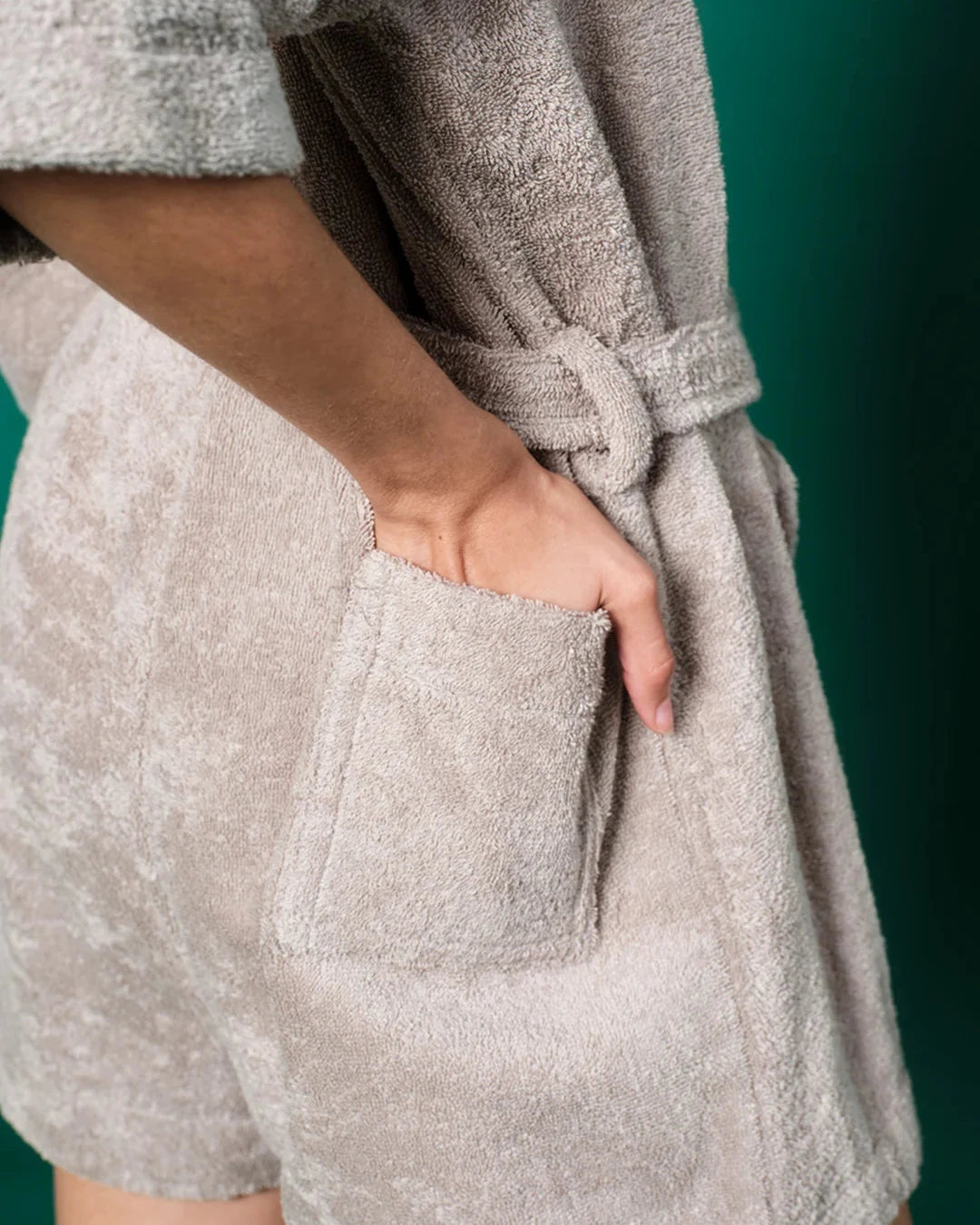 This jumpsuit, crafted from 100% cotton terry, offers a comfortable regular fit designed to suit a variety of body types with its one-size design. Equipped with a practical zipper and a terry belt, it allows for an adjustable and secure fit. Easy to care for, it can be machine washed at 30 degrees, ensuring durability and lasting softness. Ideal for casual wear, it combines functionality with effortless style.