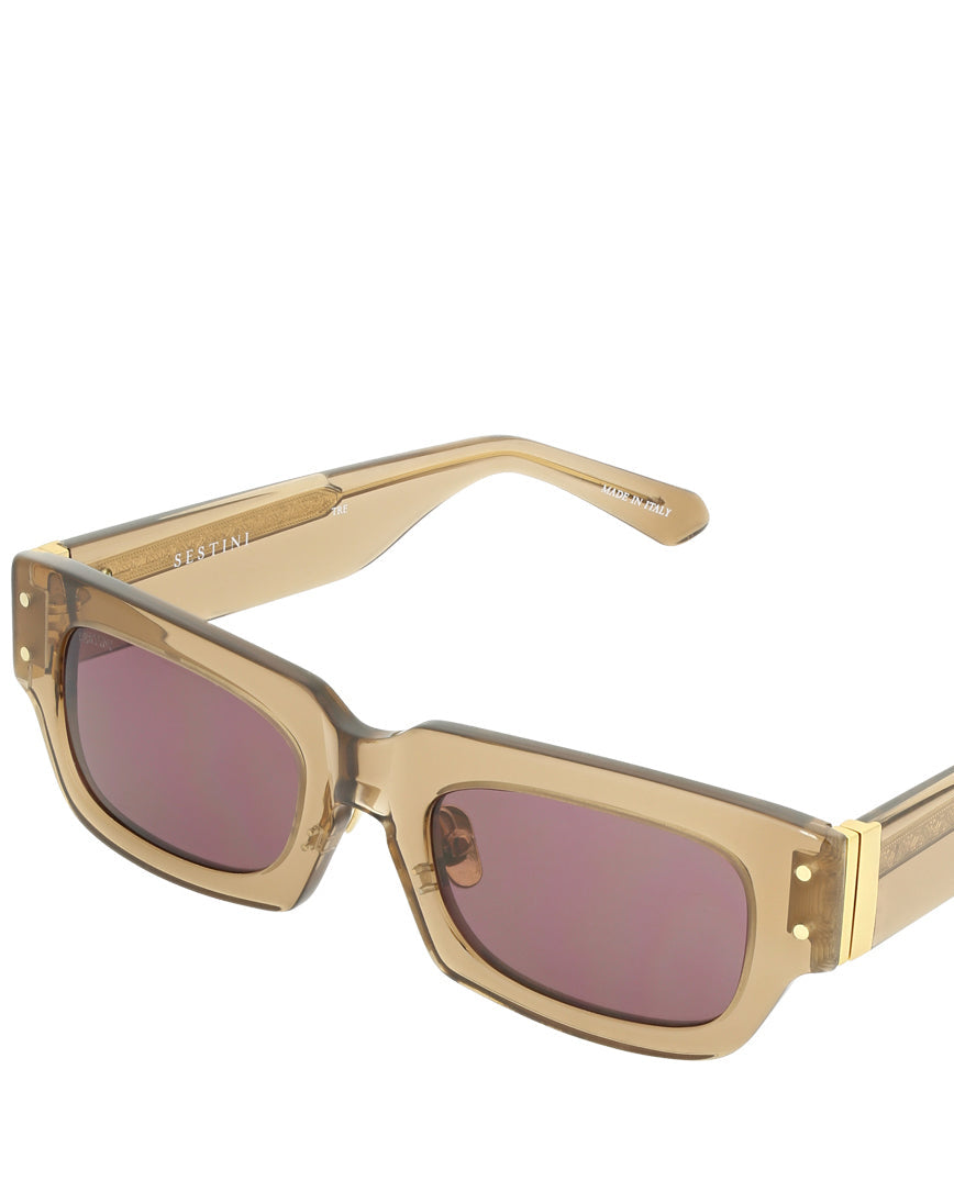 Featuring lilac-tinted Carl Zeiss lenses that offer exceptional clarity and color precision, these sunglasses combine style with superior optical performance. Designed with rounded temples and nylon-wrapped screws for enhanced durability and comfort, they include adjustable metal nose pads for a precise fit. The Japanese bulbs ensure smooth hinge action, while the craftsmanship made in Italy guarantees premium quality and timeless elegance. Ideal for those seeking refined eyewear with expert attention to detail.