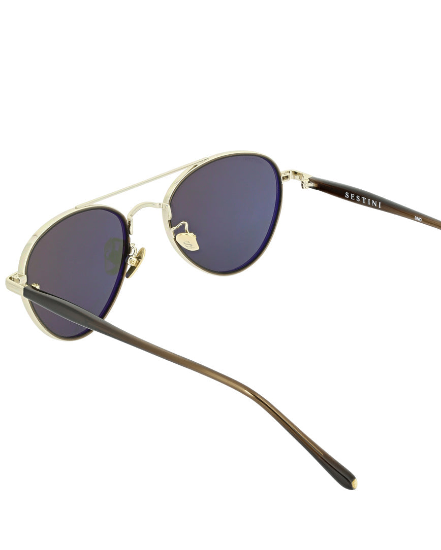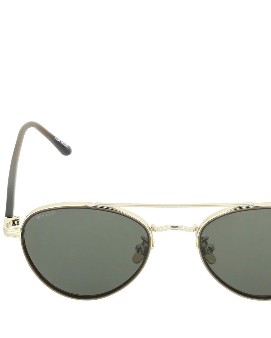 Crafted in Italy, the SESTINI HERITAGE UNO sunglasses feature robust stainless steel frames paired with precision green-tinted Carl Zeiss lenses for superior clarity and color accuracy. Designed with rounded temples and nylon-wrapped screws, they ensure durability and comfort. Adjustable metal nose pads and Japanese bulb tips provide a customizable fit, while the distinct Sestini insignia on the arms, nose pads, and lenses underscore their premium craftsmanship. These sunglasses combine expert engineering with refined style for a distinguished look.