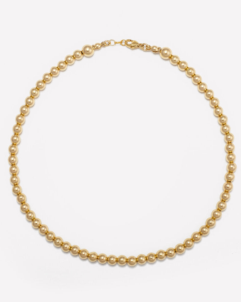 5MM 14K yellow gold beaded necklace for women on metal wire.