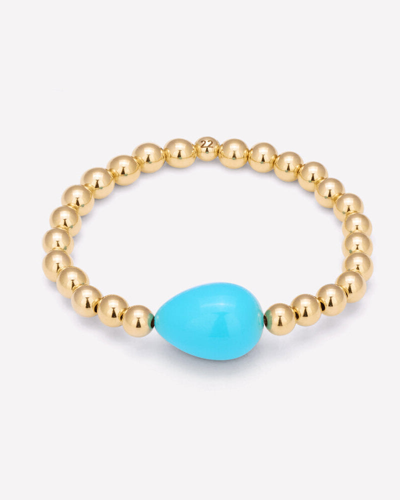 Crafted with a luxurious yellow gold and adorned with a genuine turquoise shell pearl, the SIRENA bracelet is the ultimate statement of opulence and elegance. This exquisite beaded bracelet is a timeless accessory that is perfect for any sophisticated woman's wardrobe.